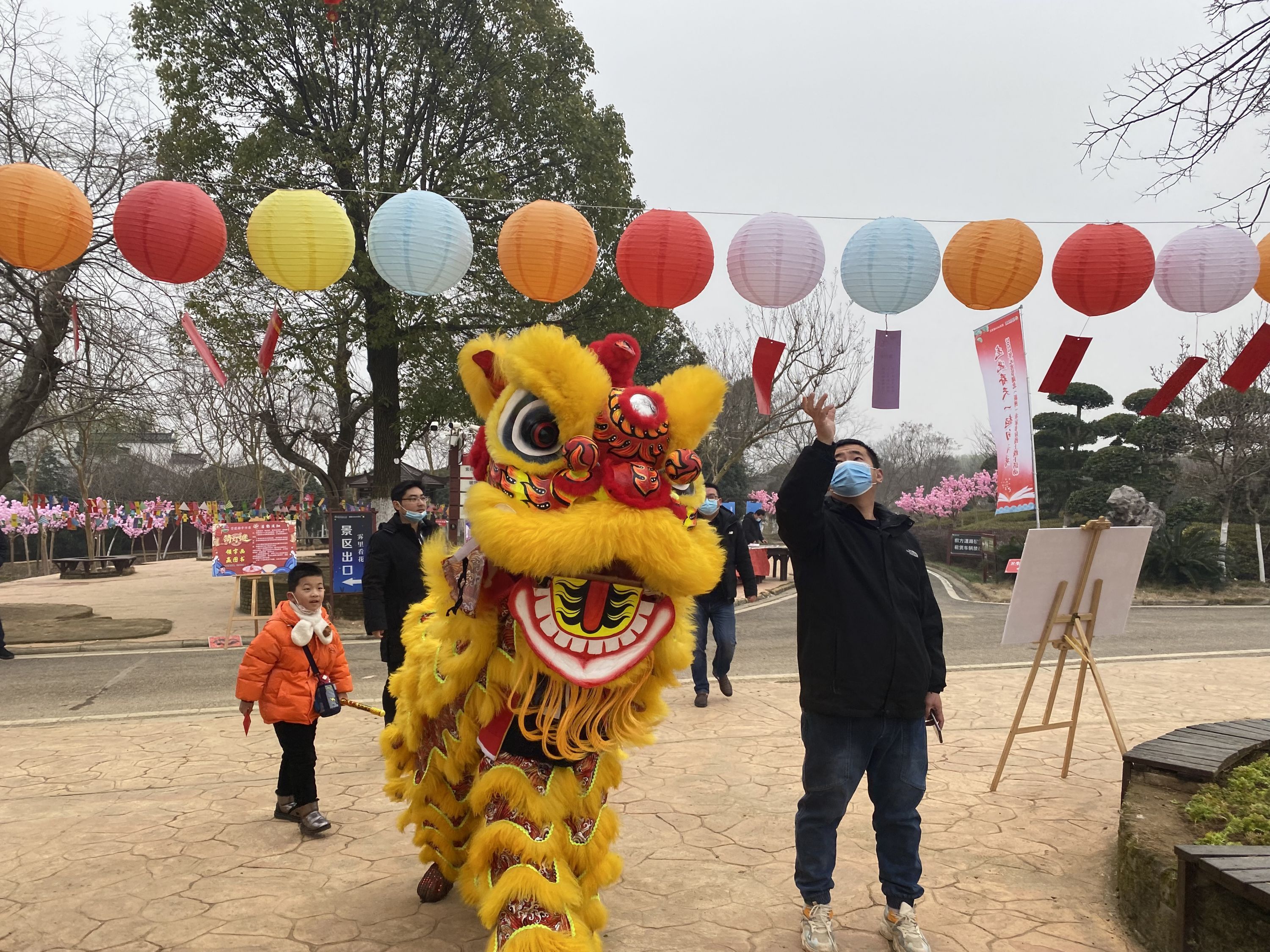 紫薇都市田园元宵节举办猜灯谜活动,现场还安排了舞狮。摄影长江日报记者潘璐
