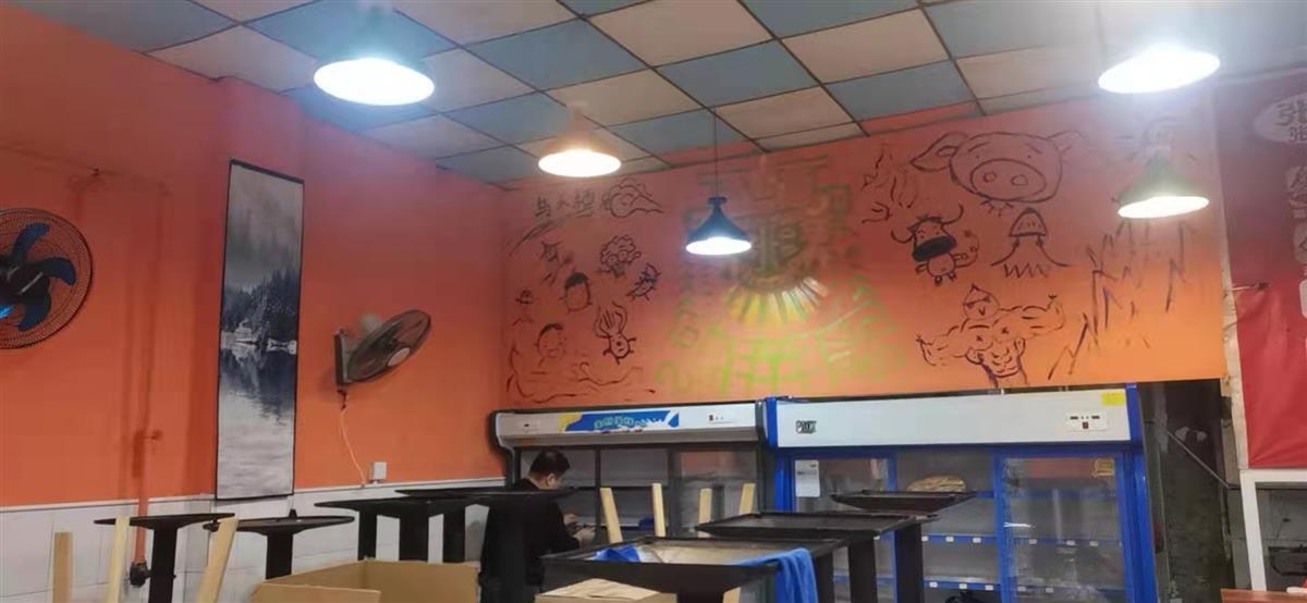 5日,餐馆老板于先生告诉极目新闻记者,他是辽宁人,和父母一同经营着视频中那家小店,店里简笔画都是自己用平板手绘的。