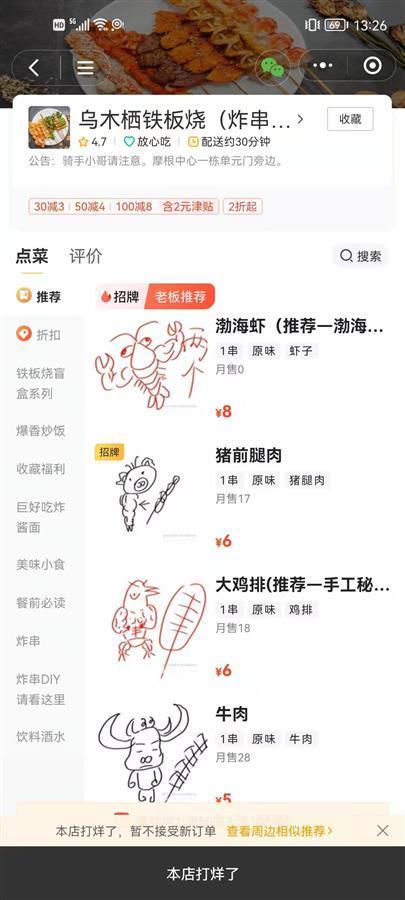 记者注意到在商家评论中,有不少网友表示,十分喜欢简笔画类型的菜单。对此,于先生也很高兴,称时常有顾客点外卖时,会备注让自己帮忙画只猪、画头牛。