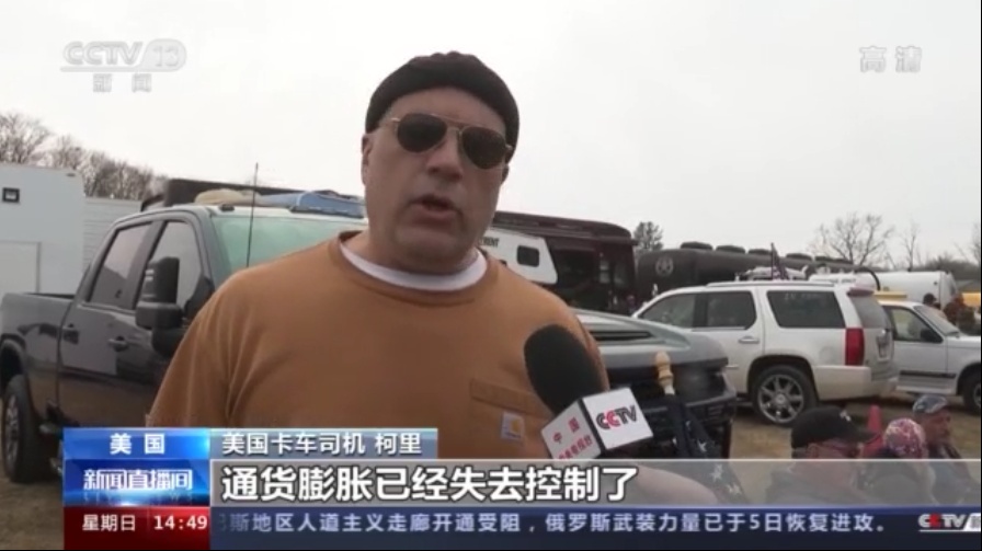 总台记者了解到,目前聚集在这里的卡车司机多数是从加利福尼亚州出发的,沿途不断有卡车和其他车辆加入,在抵达马里兰州时,加入的卡车已经超过了100辆。部分卡车司机在接受采访时说,他们反对美国的防疫措施,是因为很多措施“自相矛盾”而且还“因人而异”,他们现在还对美国目前严重的通货膨胀不满,美国的通胀已经失控了。