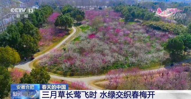 央视网消息:现在我们来到的是位于安徽合肥市的环巢湖生态廊道。这里水陆交织、城湖共融,绿草发芽、春梅绽放,到处一派生机勃勃的盎然景象。眼下,在生态廊道上的金斗公园里,6000多株梅花正陆续盛开,姹紫嫣红,成了城市里的一道亮丽的风景线。