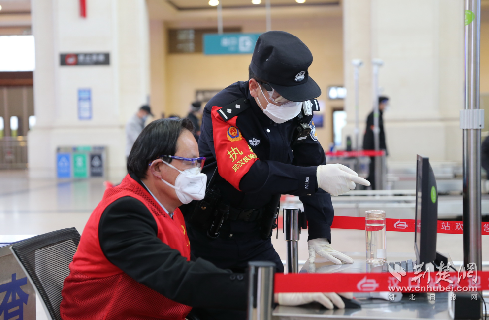 汉口火车站,铁路民警督促客运部门加强进站实名制查验工作(通讯员闫育森 摄)