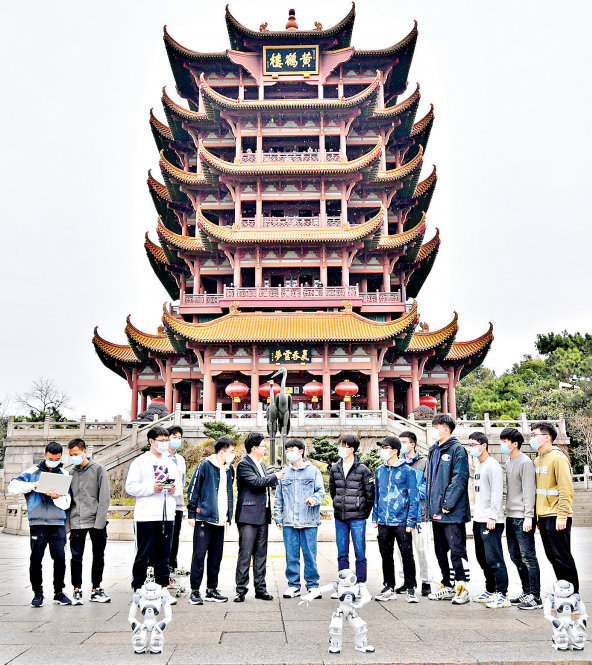 武汉不仅拥有博采众长的多元文化,更是全世界在校大学生最多的城市,拥有无限的创造力和活力。跟着镜头来到黄鹤楼前西广场,4个酷炫的机器人正在跟随音乐欢快起舞,它们由武汉的大学生设计,能模仿大部分人体动作,应用十分广泛,可以用于球场自动捡球、快递物流分拣、零售货物上架、生产线生产制造、医疗精准手术等。