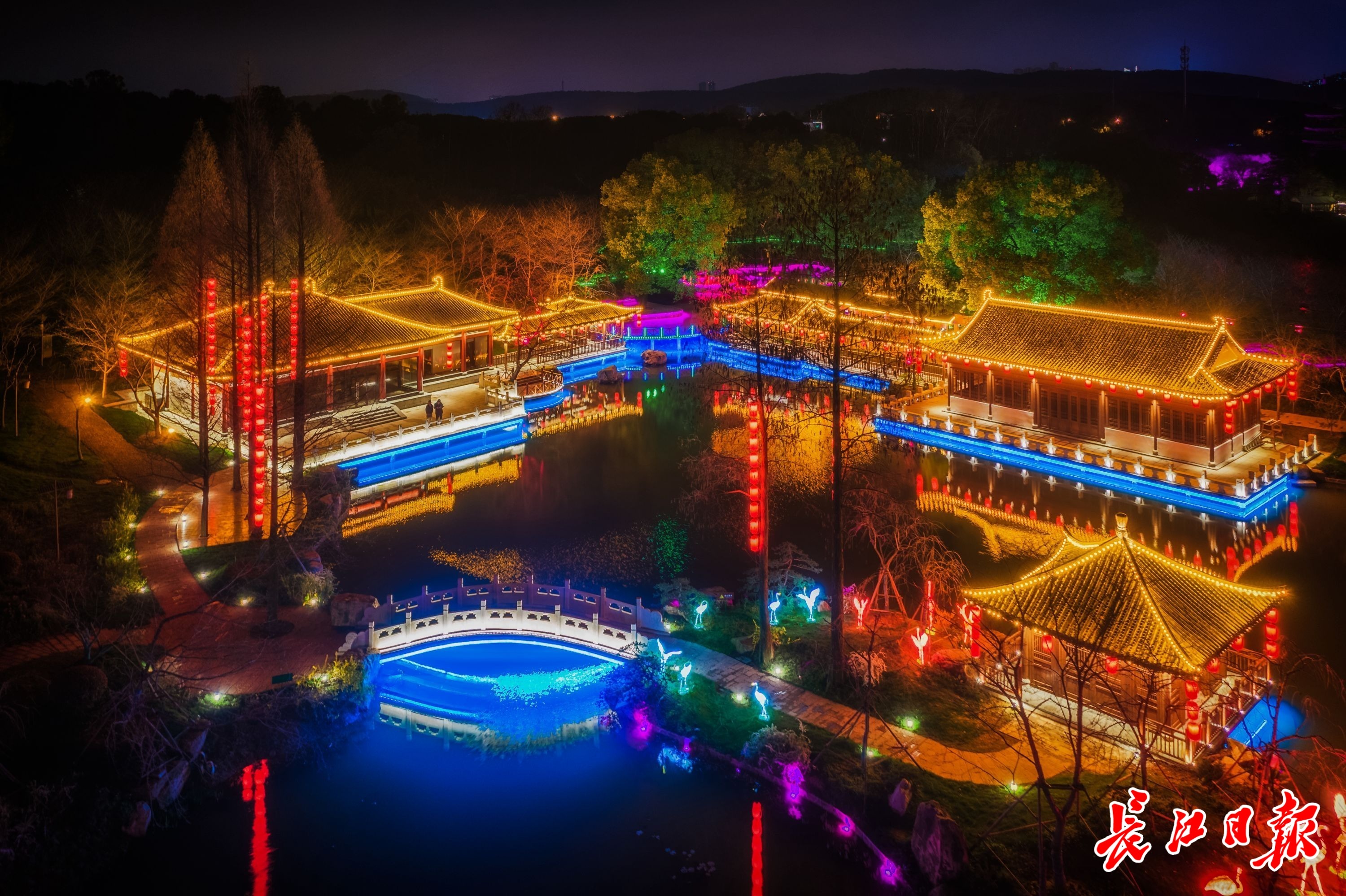 东湖樱花园去年夜景效果。 长江日报记者刘帅 摄