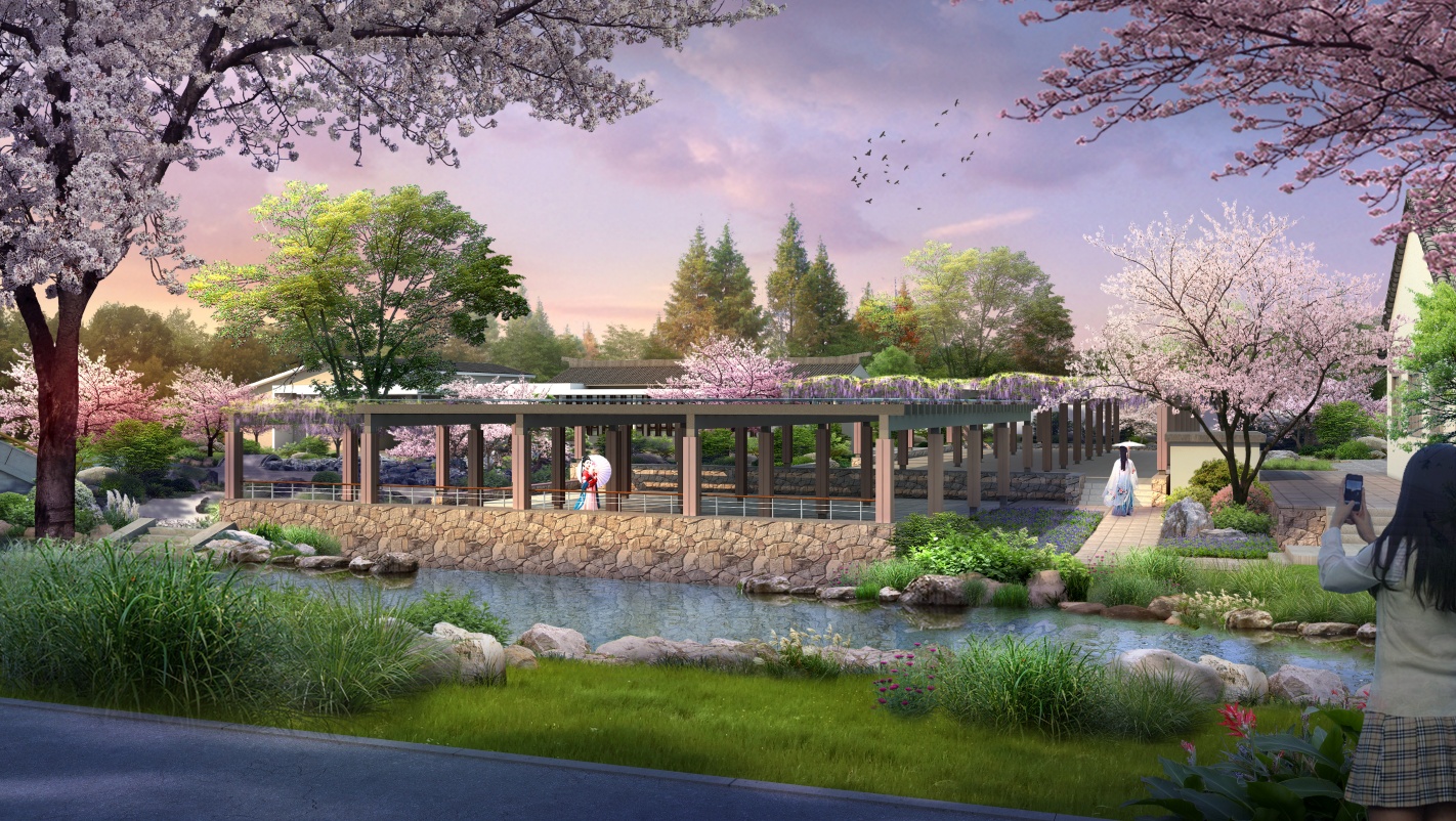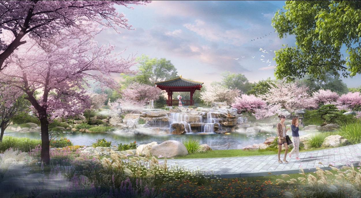 樱花盛开时的东湖樱花园新区域效果图。