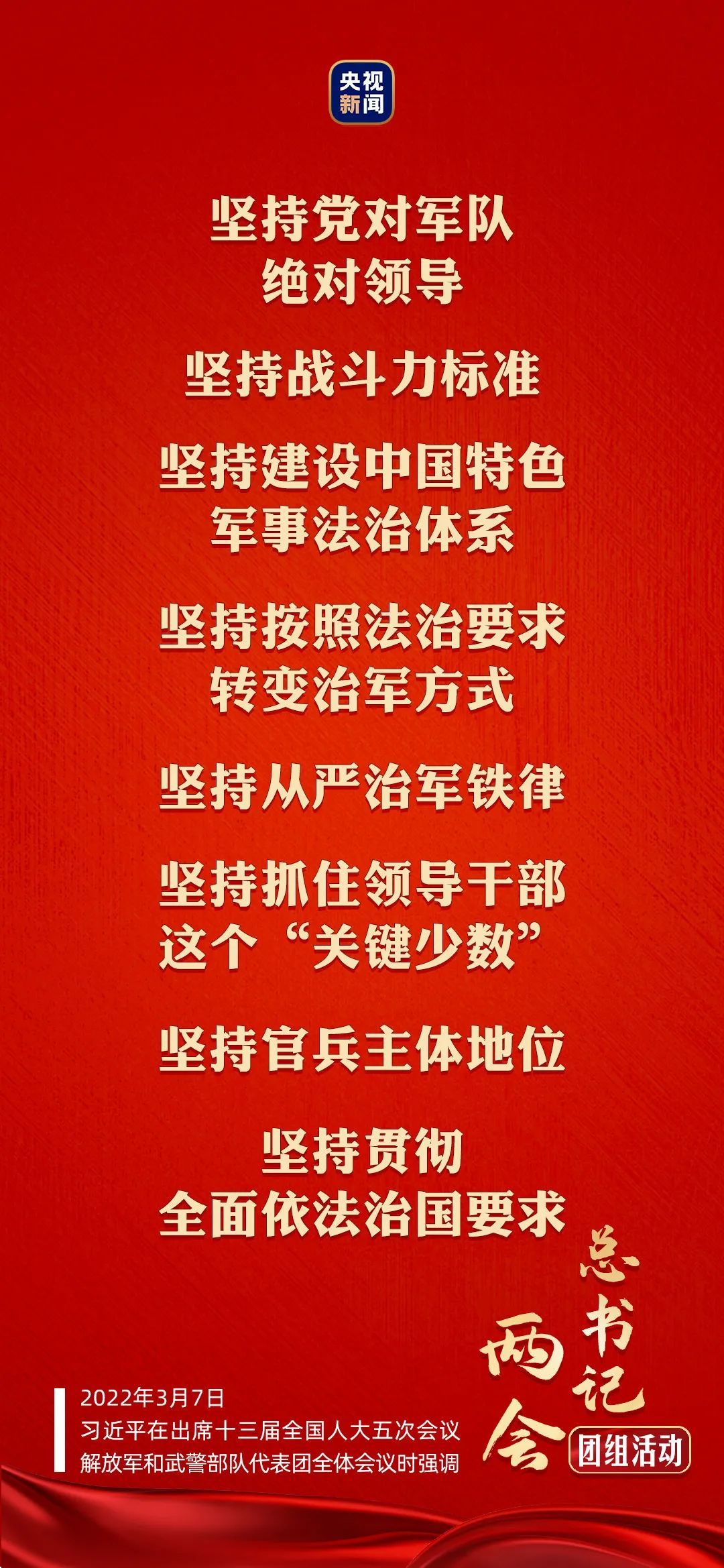习近平最后强调,全军要抓紧抓实备战打仗工作,协助地方做好维护社会大局稳定工作,及时有效处置各种突发情况,保持国家安全稳定,完成好党和人民赋予的各项任务。