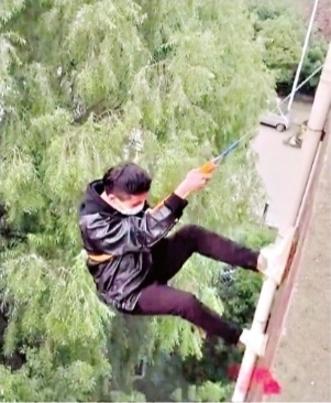 “使用时要尽量后仰,用脚蹬向墙面,千万不要全程看脚下。”蔡军说,即便是平时不怎么练习的市民,一般也能在两分钟内完成备降动作。