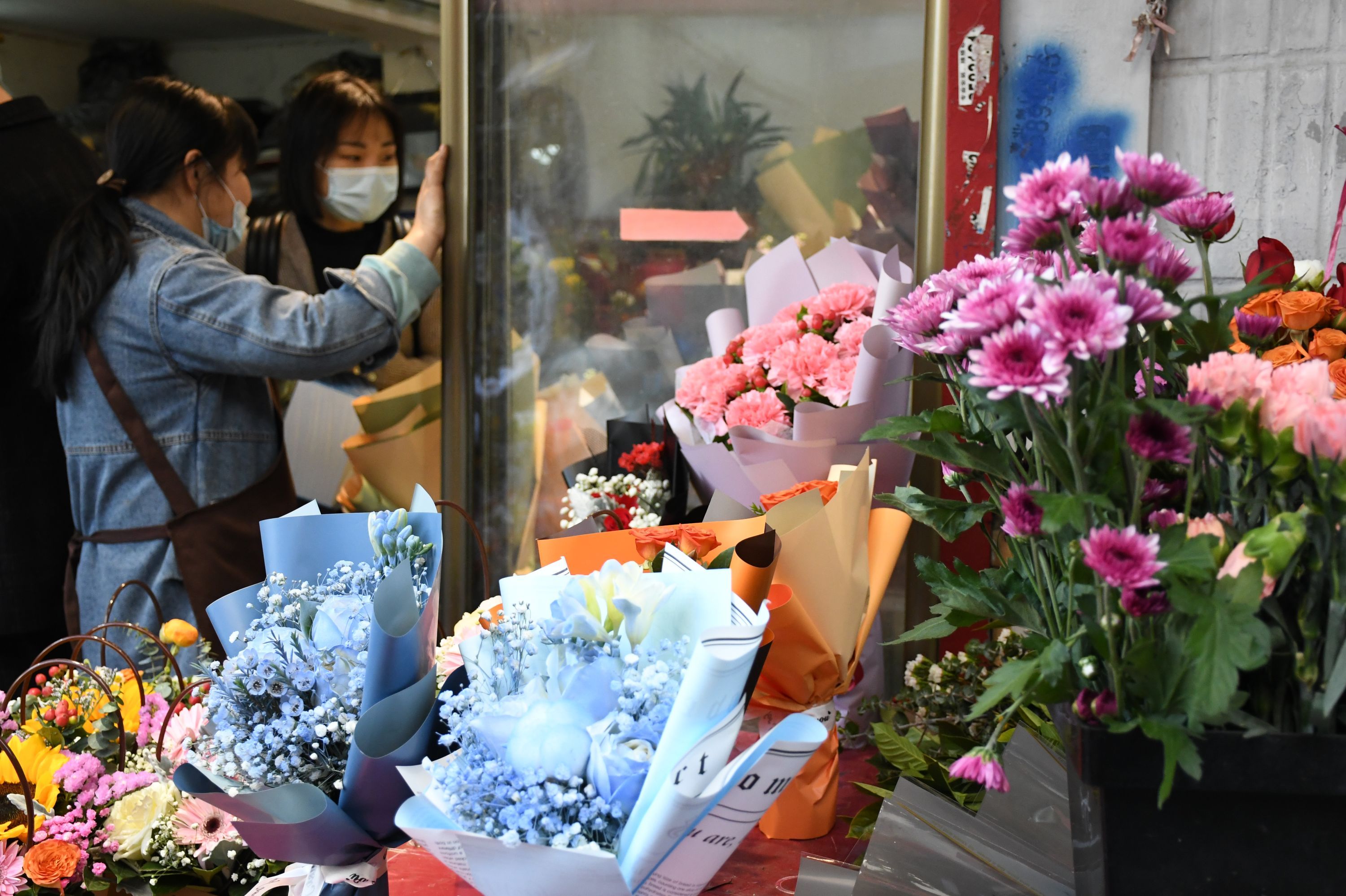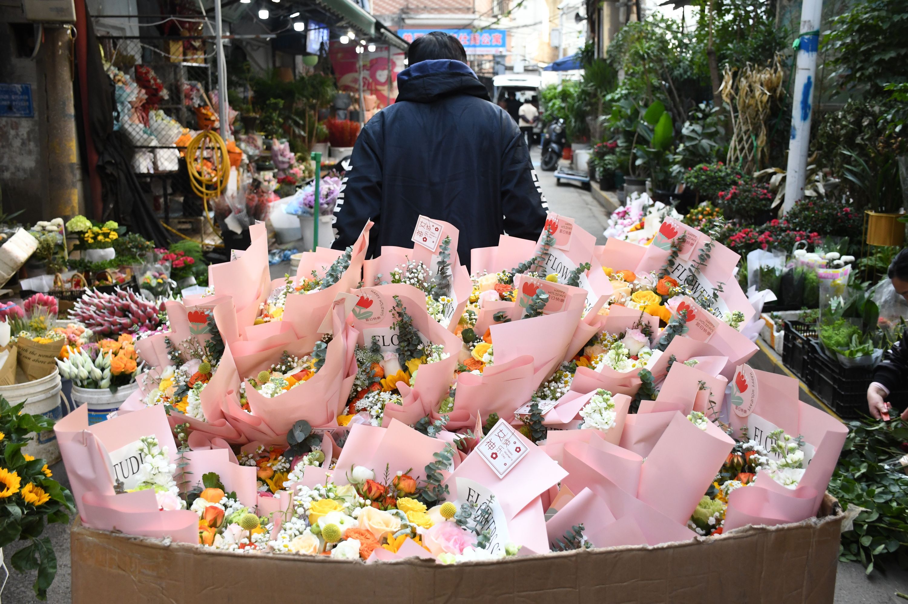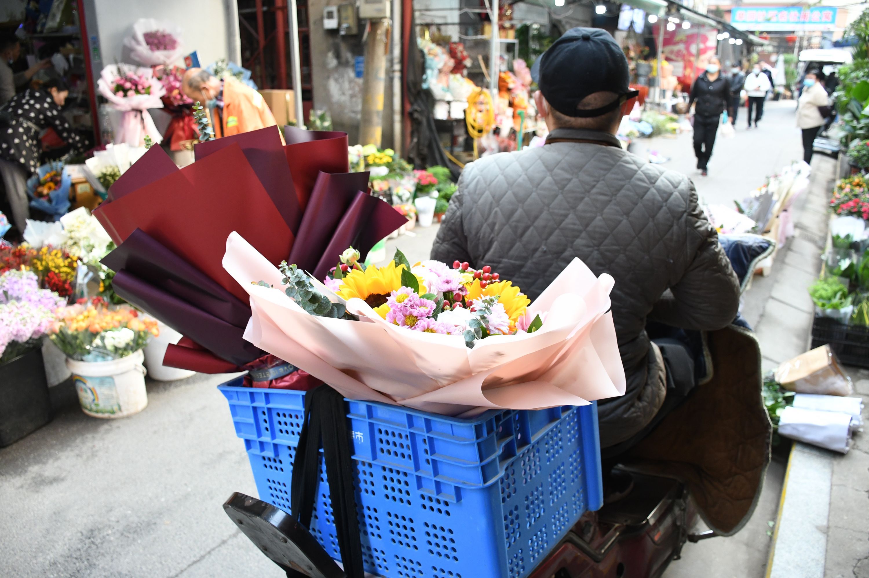 长江日报大武汉客户端3月8日讯 3月8日,正值“三八”妇女节,在循礼门单洞花市,市民在这里选购鲜花回去送亲友。各家花店除了门市销售外,还通过网络进行鲜花销售,不时有外卖小哥到店里拿走网上订购的鲜花送到客户手中。当日花市销售购销两旺。