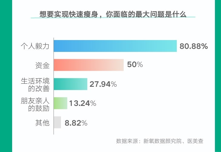 今年3月,新氧免费体验联合新氧数据颜究院面向医美用户发起的调研显示,高达94.44%的用户有瘦身需求。