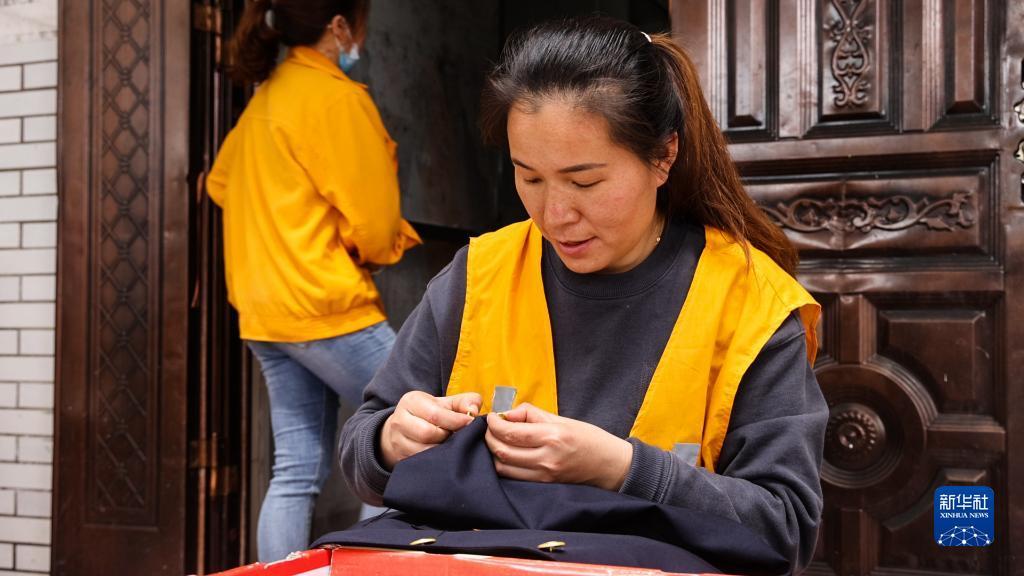 3月7日,在百色车务段八渡站,一名布依族厨娘利用闲时为同事缝补工作服。