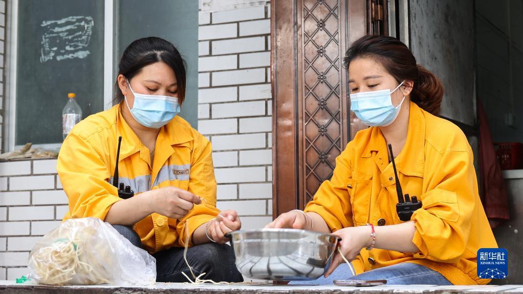 3月7日,在百色车务段八渡站,两名布依族厨娘在摘菜给火车司机准备午餐。