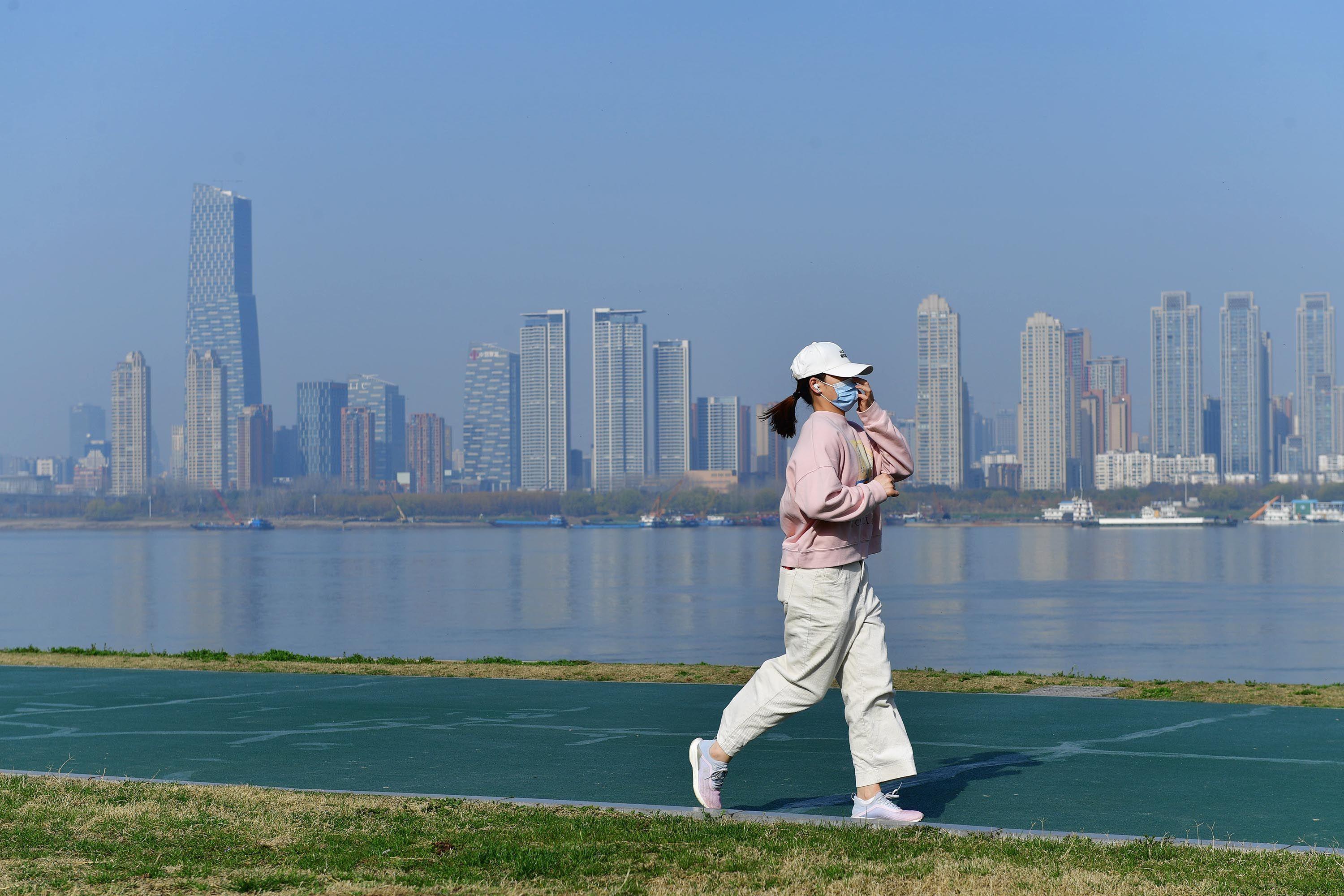 3月8日,武汉天气晴好,市民在临江步道上跑步锻炼。长江日报记者李永刚 摄