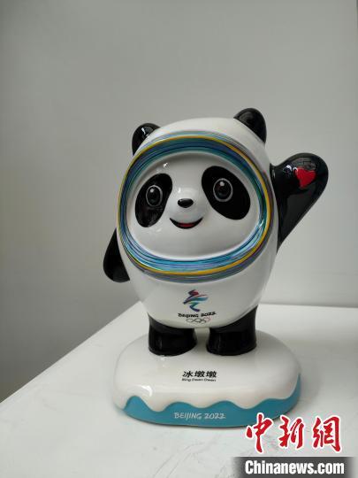 冰墩墩瓷雕作品高24厘米,代表北京成功举办第24届冬奥会 李妮 摄