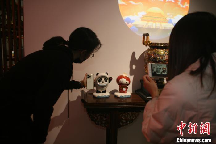 现场嘉宾给新品陶瓷冰墩墩、雪容融拍照 李妮 摄