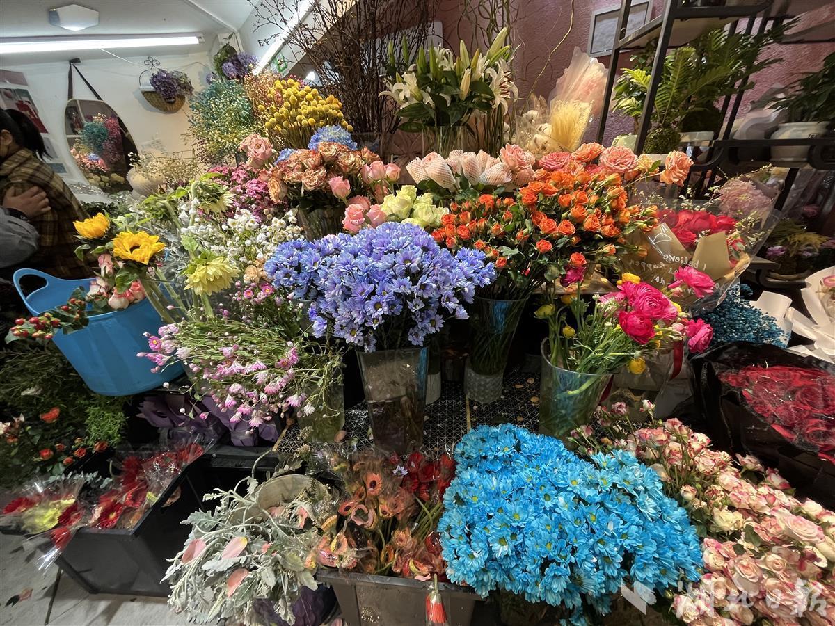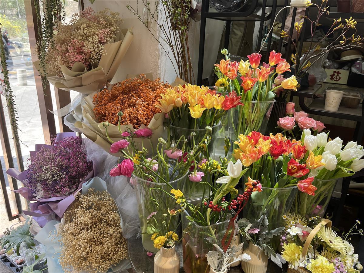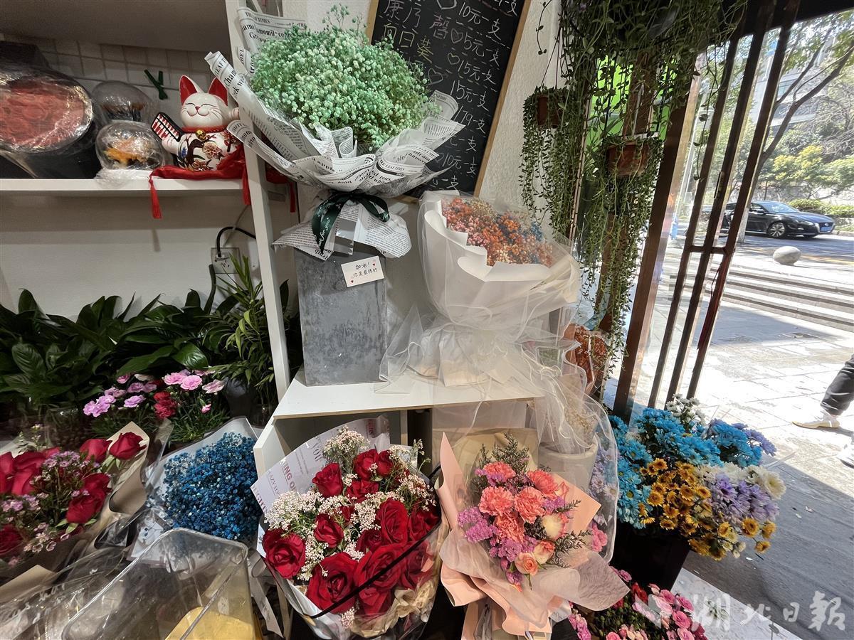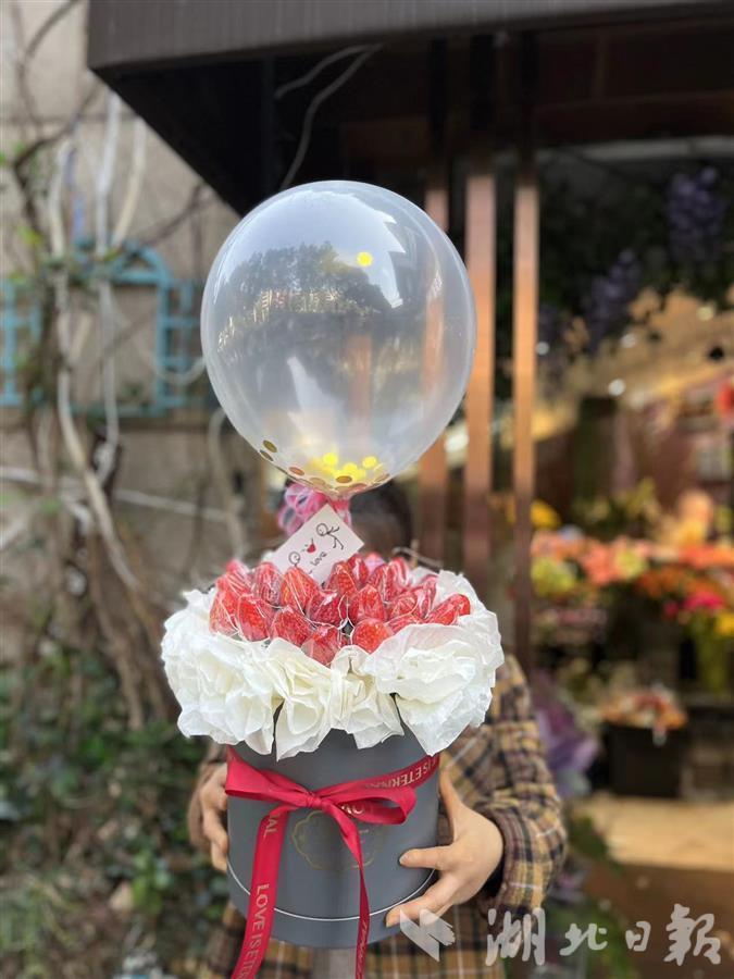 3月8日上午11时,街道口久喜花坊内,玫瑰、郁金香、满天星等各类鲜花色彩缤纷,店员片刻不停地“赶制”花束订单,包装好的花束、花篮整齐摆放。除色彩明丽的鲜花,水果、零食花束等创意花束在武汉悄然走红。“刚刚送出一捧草莓花束。”何雾告诉记者,这几天不断有年轻人订制水果花束,草莓、橙子、甚至西瓜等水果都可以包装成花束的造型,价格从一百多到几百不等。