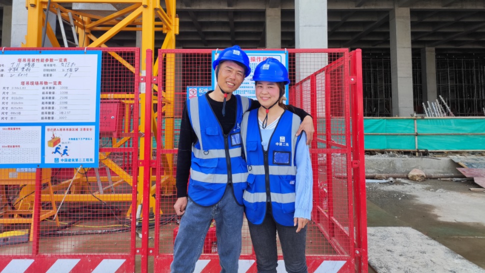 他们近在咫尺,每天早晨爬上驾驶舱,发出只有双方明白的讯号问候彼此。他是她的徒弟,也是她嘴里的“孩子爸”。除了工作之外,他还有一个职责就是陪伴。每天即便是加班到半夜,夫妻也一起携手同归,用这种朴素的方式,营造出工地上的浪漫与爱意。