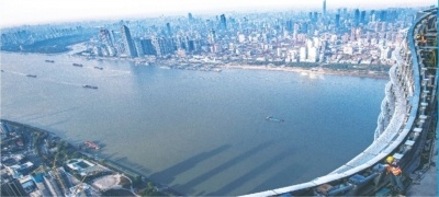 从武昌向汉口、汉阳俯瞰,两江交汇、三镇鼎立,长江主轴美不胜收。