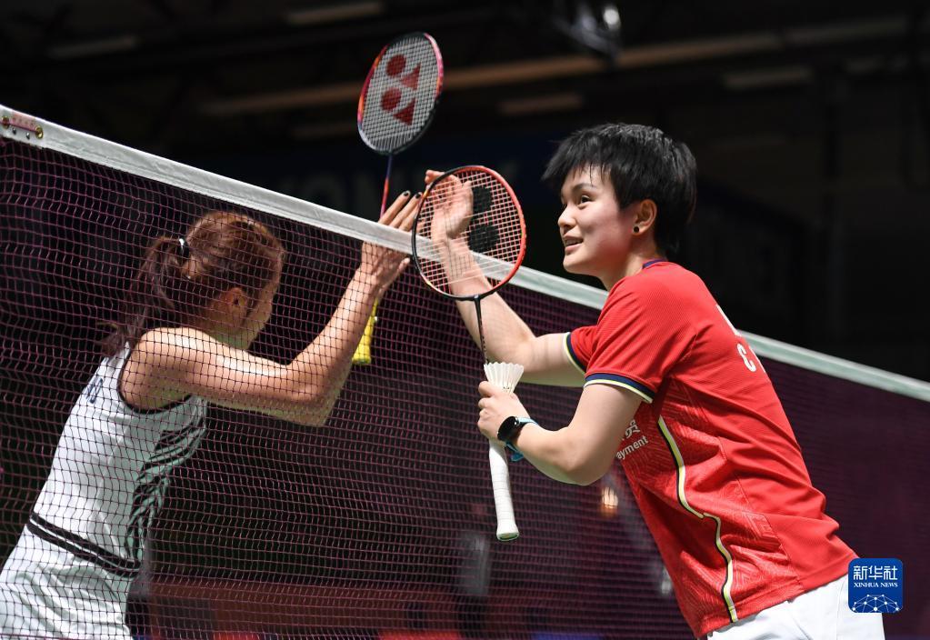3月8日,王祉怡(右)在比赛后向获胜的因达农致意。