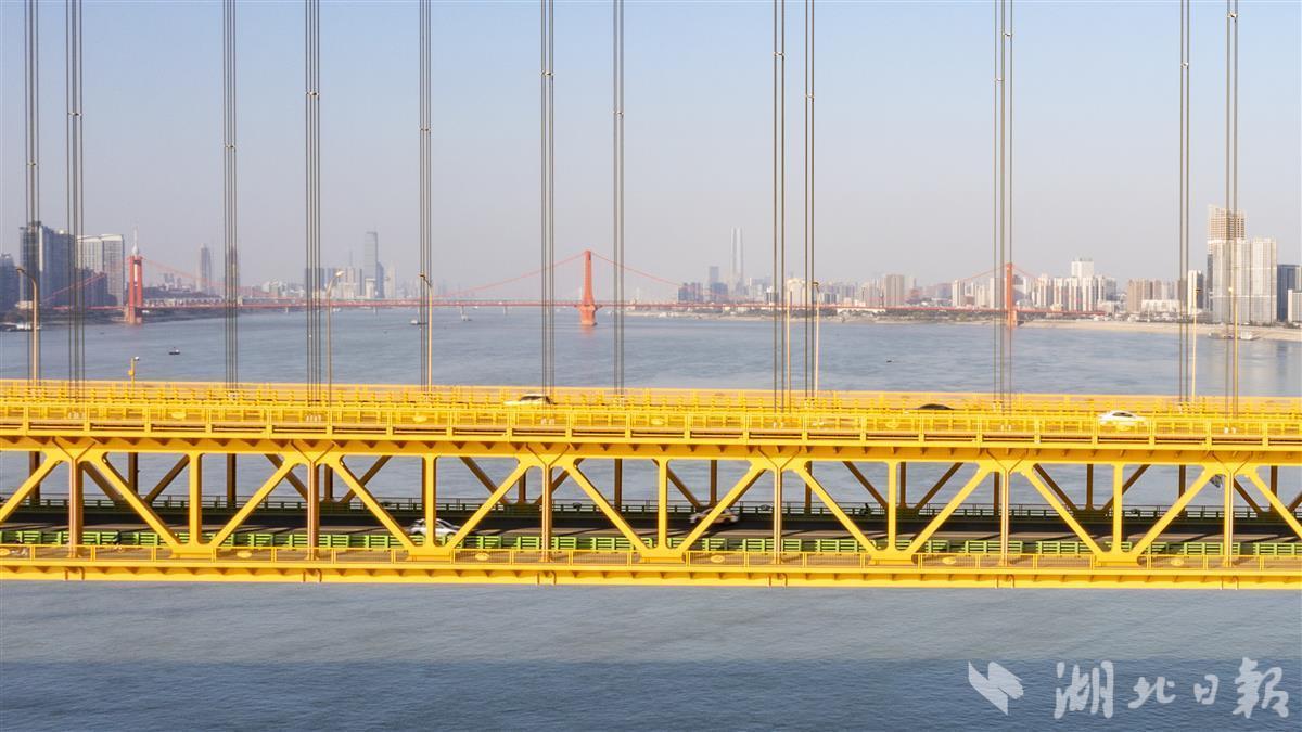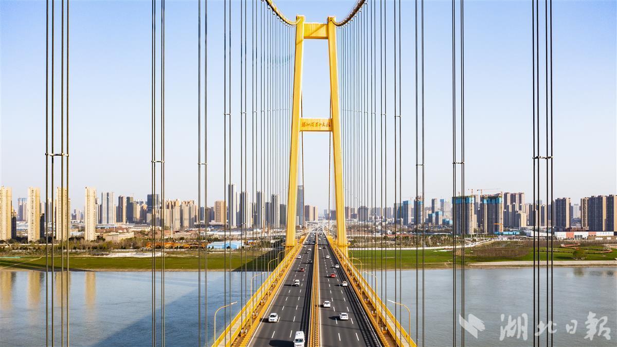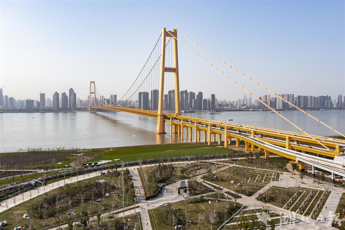 3月9日,武汉阳光明媚,不少市民来到武汉杨泗港长江大桥南岸公园搭起帐篷,沐浴春日暖阳。杨泗港长江大桥两岸天清气朗,一派风和日丽的景象。(湖北日报全媒记者 何宇欣 摄)
