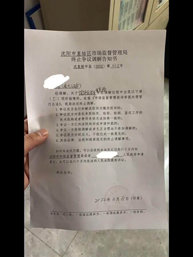 张先生已向皇姑区市场监督管理局投诉此事。3月8日,市场监督管理局进行了调解,但由于张先生和商家双方分歧过大,不能达成一致意见,该局决定终止调解。目前,张先生正在考虑找检测机构对针管进行检测,他和商家均在等待外卖平台的处理结果。
