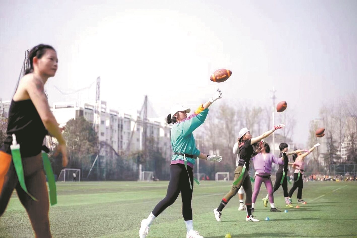 在很多人的印象中,橄榄球运动要进行激烈的身体对抗,擒抱拦截,冲击肉搏,是男人爱玩的项目。但在武汉,一项有别于美式橄榄球的运动——腰旗橄榄球,让许多女生乐在其中,并且在武汉年轻人群体中流行开来。