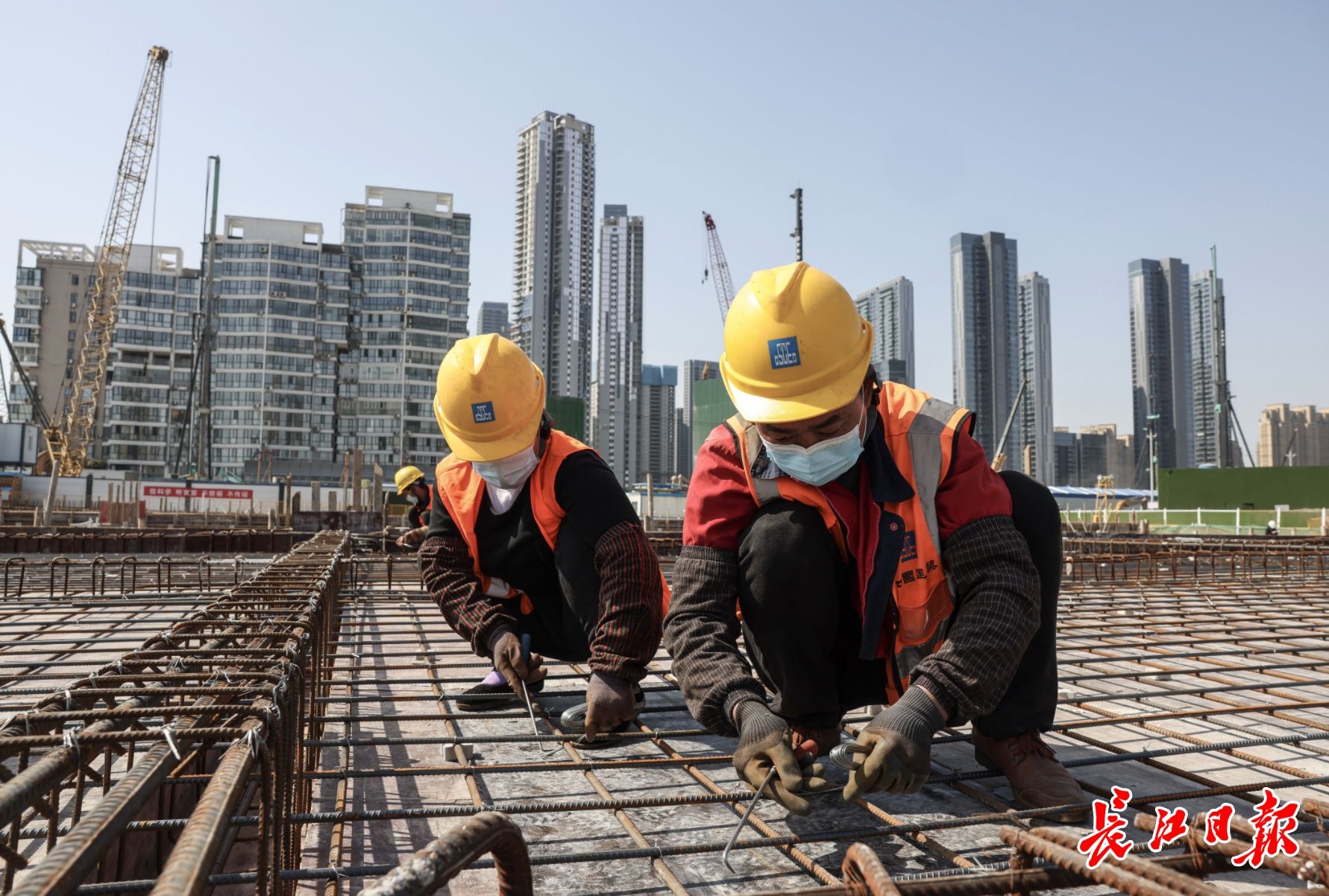 工人们正在加紧施工安装管道等收尾工作。长江日报记者胡冬冬 摄