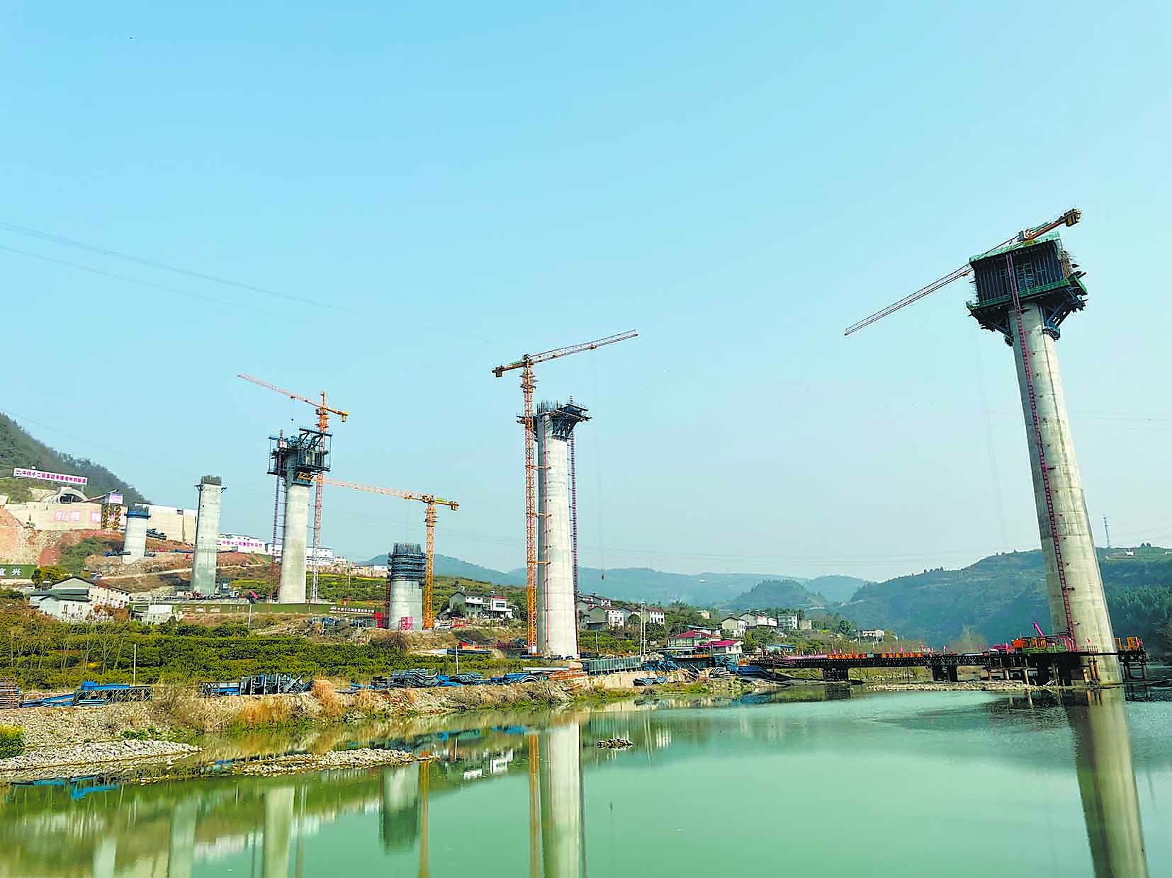 中铁十二局集团宜兴铁路站前一标项目部党支部书记郑忠林介绍,全桥均采用连续刚构设计,减少桥墩数量,以减少对土地的占用,为未来发展留下空间。