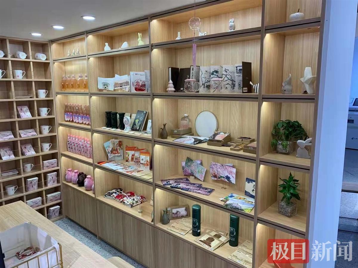 邮局里最具文艺范儿的便是充满樱花元素的文创休闲区。现场有众多以樱花、武大特色建筑、校徽、校训为灵感设计的文创产品,包括樱花杯、挂饰、书签、抱枕等品类超过120种。