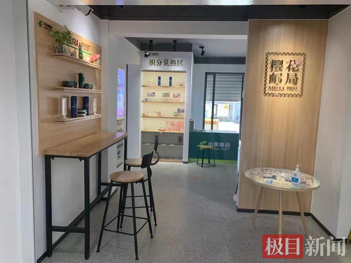 在邮政寄递区,师生们可以办理包裹收寄,同时放有智能包裹柜,实现共享寄递。大家也可在这里将具有樱花特色的文创产品寄送到远方亲朋好友手中。