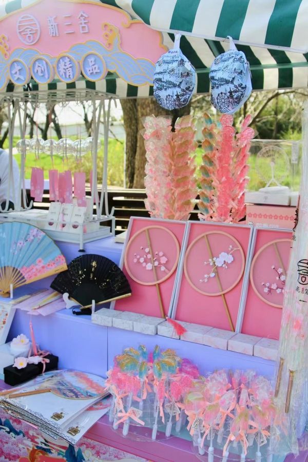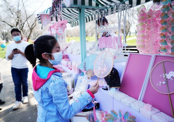 樱花文创摊位成为东湖樱花园里一道别样风景。赵丽 摄