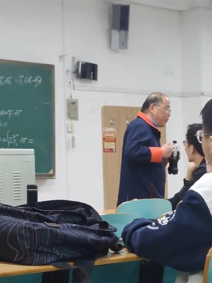 刘同学介绍称,这位教师是该校文法学院副教授谢志浩,在这堂《百年中国历史人物》选修课上,她发现谢教授不仅讲课非常幽默风趣,而且他与别的老师不同:拿的不是保温杯而是可乐。刘同学说,在近三个小时的课堂上,谢教授都滔滔不绝地讲课,她感觉很有意思,便拍了短视频记录下来。当时谢教授正在给他们讲学位相关知识,告诫学生们努力学习。