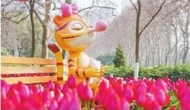 解放公园郁金香正是盛花期。