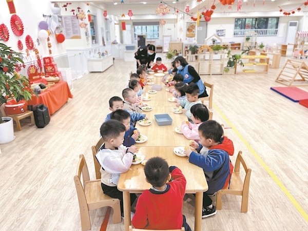 托育园内孩子集体就餐 (武汉市江欣苑社区托育园提供)