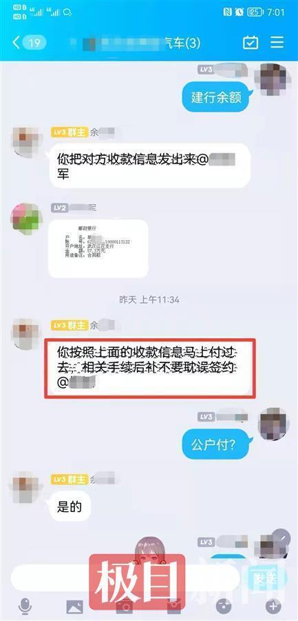 3月2日上午11时,位于武汉市江岸区的一家汽车销售公司,财务人员姚女士收到同事发来信息,称浙江某贸易公司有一笔款要汇到公司,让她把对方加为QQ好友,对接相关事宜。姚女士加对方为QQ好友之后,被拉进一个QQ群,公司“老板”也在群里。