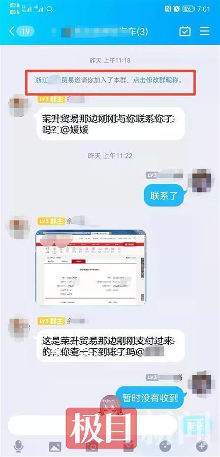 她刚进群,“老板”便询问联系浙江某商贸公司进展,她如实回答。随后,“老板”以洽谈项目需要付款为由,向姚女士发来转款指令,说财务手续以后再补。姚女士随即转了账。