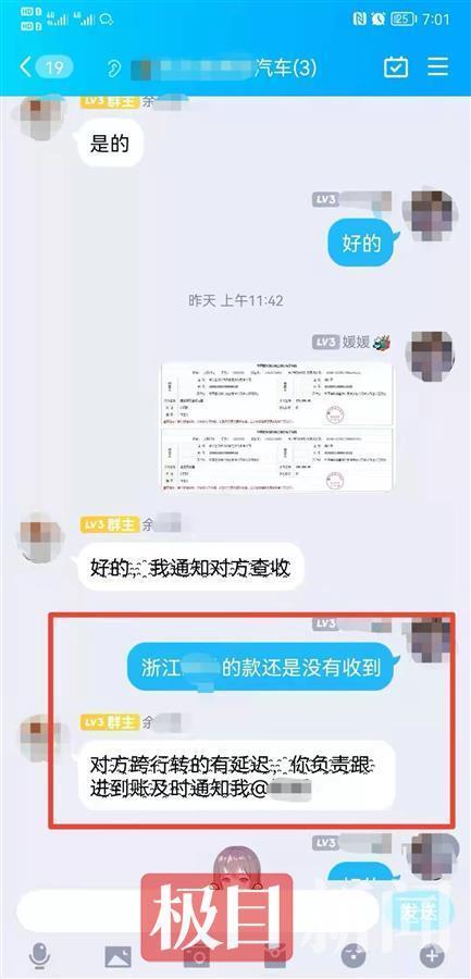 当天下午,“老板”再次在QQ群里询问姚女士,又让她转账,姚女士又转了一笔。