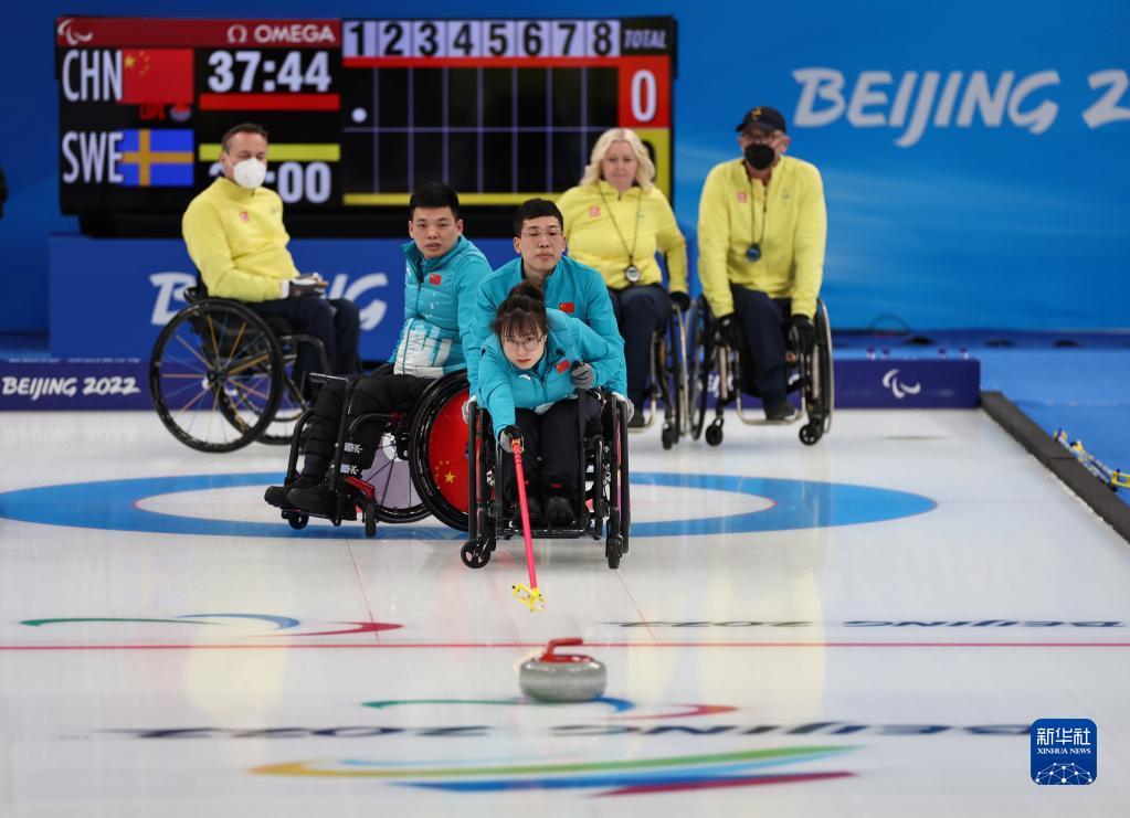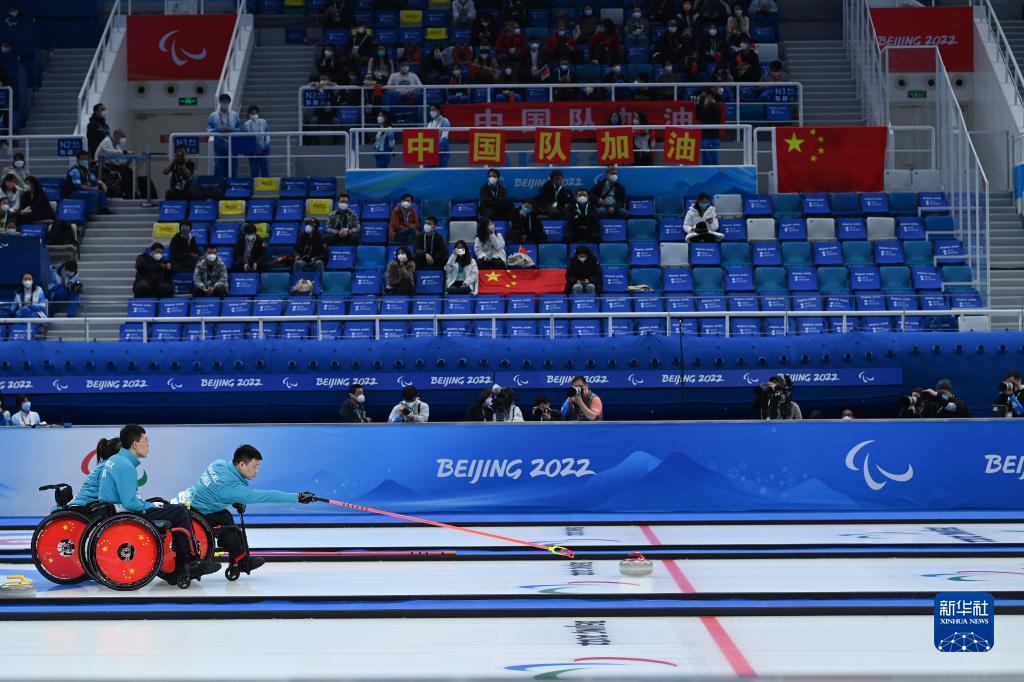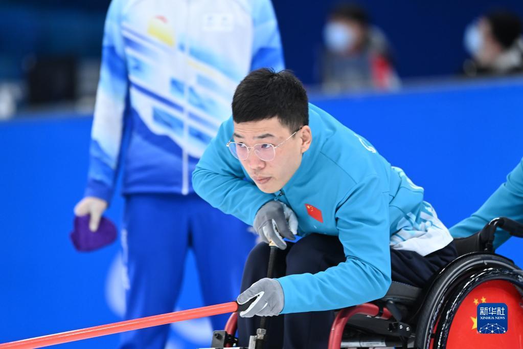 3月12日,中国队选手陈建新在比赛中掷壶。新华社记者 任超 摄