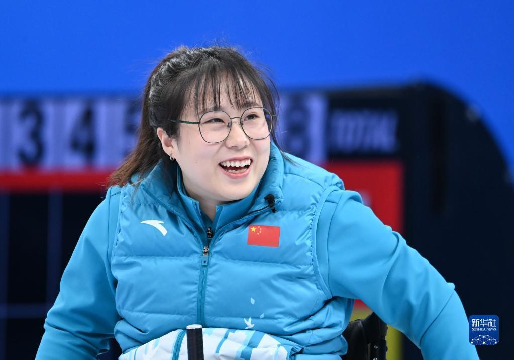 3月12日,中国队选手闫卓(前)在比赛中掷壶。新华社记者 张可任 摄
