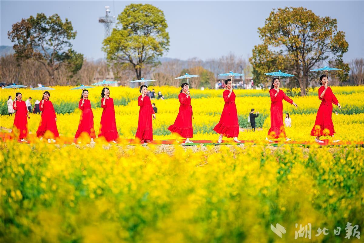 这是武汉市马鞍山苗圃,打造的一个文旅新景点,吸引了湖北省非物质文化研究中心文华学院师生、华中科技大学的女教授们和武汉兰韵昆曲社演员们,在花田中演绎中国优秀传统文化。(湖北日报全媒记者 朱熙勇包东喜 摄)