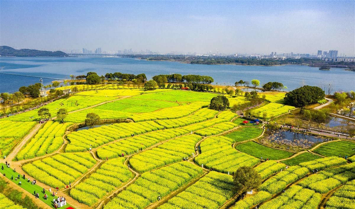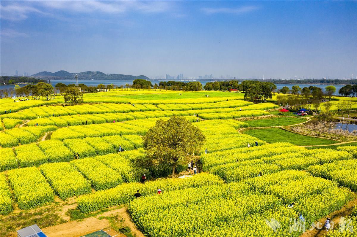 在东湖吹笛景区太渔桥,三月份突然出现了漫山遍野金黄的油菜花,吸引了很多爱花的市民观赏,形成了一个网红打卡的新景点“渔桥浪金”。