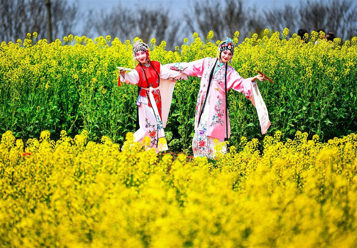 2022年3月12日,在花田中,传出了悠扬的古琴声,还有昆曲《牡丹亭游园》优美的唱腔声,显现出仙女下凡婀娜多姿的美景。