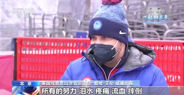 美国残奥高山滑雪运动员 戴维·艾伦·威廉姆斯:所有的努力、泪水、疼痛、流血、摔倒,所有我为了这个运动的付出都得到了回报,我们交了许多朋友,互相支持、互相鼓励,我们都是团结在这个赛场。