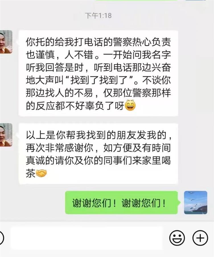 没想到第二天,曹女士主动给潘时涛打来电话,说自己后来见电话是武汉的,且又准确说出她的名字。同时慢慢想起来寻找她的周先生是曾经非常要好的同事,便让潘时涛转告周先生她的联系方式。“没想到这么快就找到当初好友。”周先生至今仍感意外。