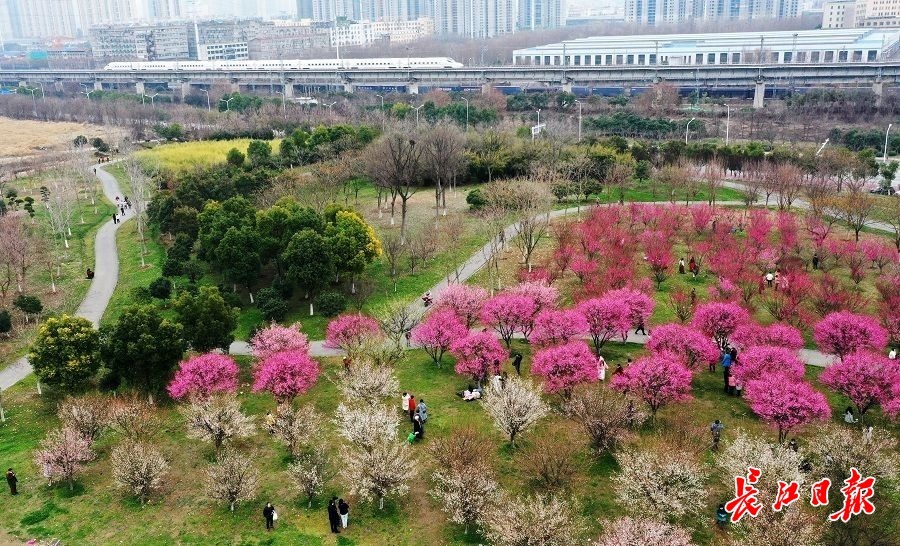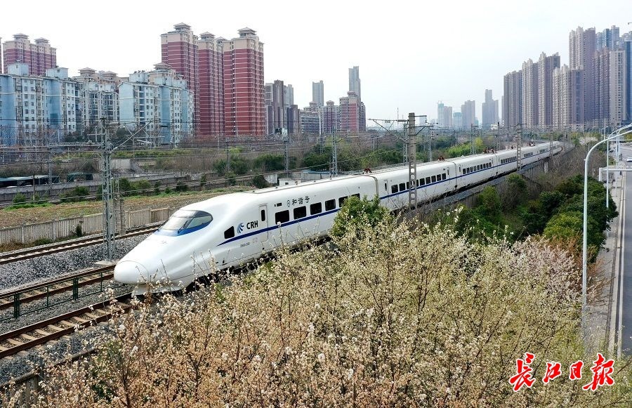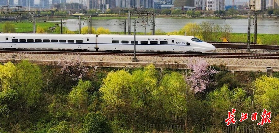 长江日报大武汉客户端3月14日讯 正值春花烂漫时,素有九省通衢之称的武汉,高铁、地铁、城际铁路沿线各种果树、花卉争相开放,飞驰的列车仿佛跟春天约会。