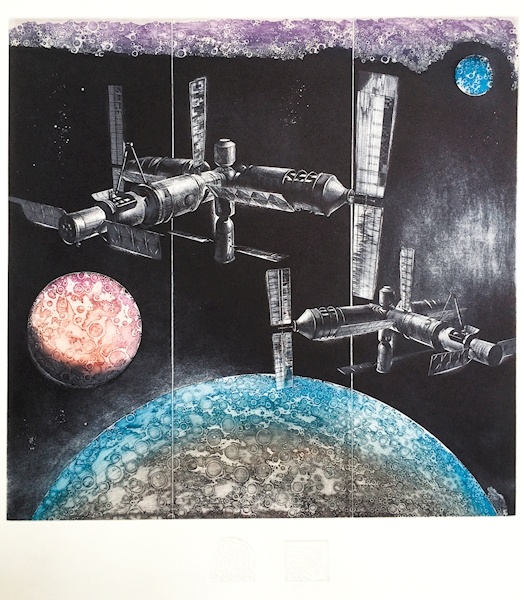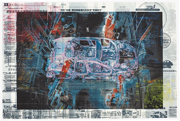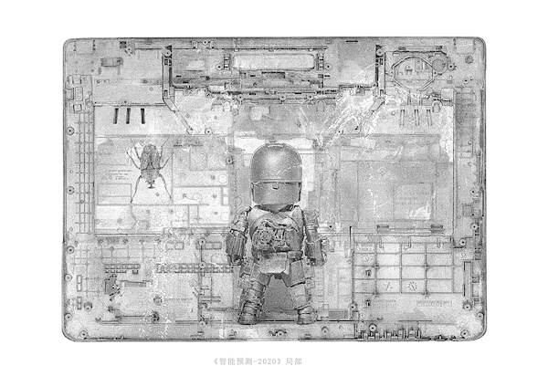 “工业·青年”板块,承袭工业版画以工业现场为表现题材的传统,同时洋溢着时代的气息。作品《建设中的杨泗港大桥》,将传统木刻所带来的感染力与当代艺术的形式感近乎完美结合,有力地传达了武汉“造桥天团”展现的 “中国力量”。作品《筑梦》系列组画选取制造业中的新能源汽车、智能化工厂等,展示中国工业的全新风貌,并通过作品思考中国制造业的未来与发展。绝版套色木刻《工业现场》,以重工企业的标志性符号——管道为表现主题,体现现代化机械代替了繁重人力工作的进步。作品《寰宇之光——天宫空间站》以超现实主义的绘画风格展现中国航天工业取得的伟大成就。作品《智能预测》,则体现作者关于人工智能、战争、环境、人类生存等问题的思考。
