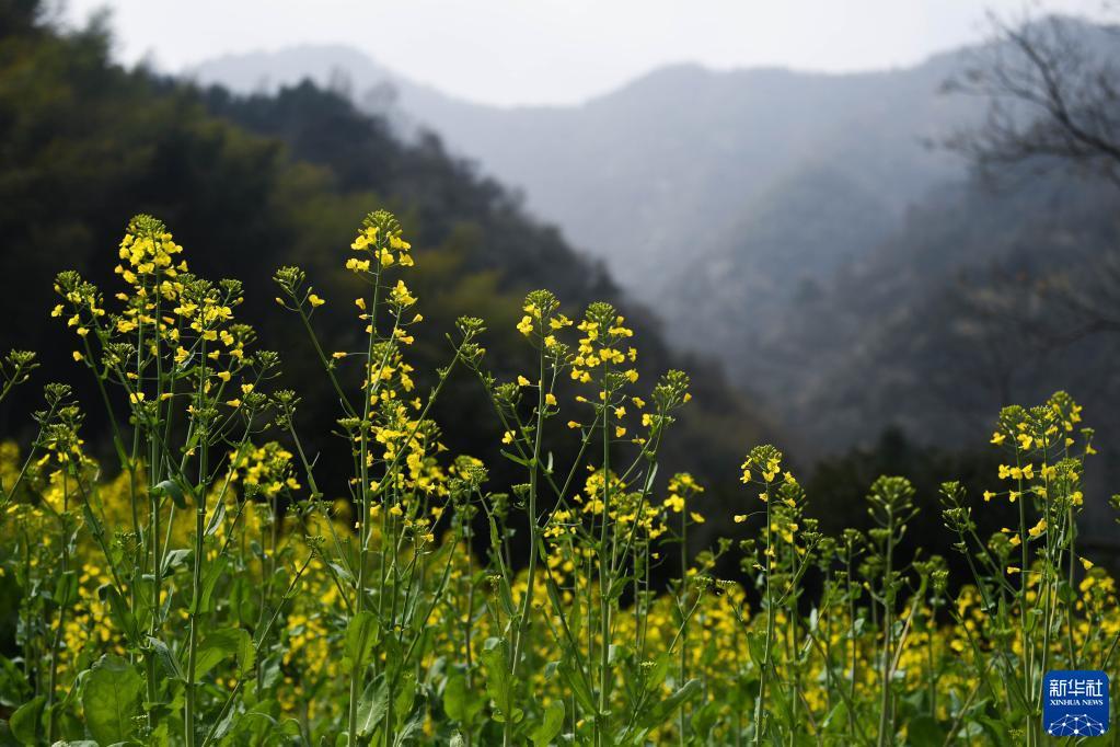 3月15日拍摄的建德市三都镇的八亩丘山岭上盛开的油菜花。