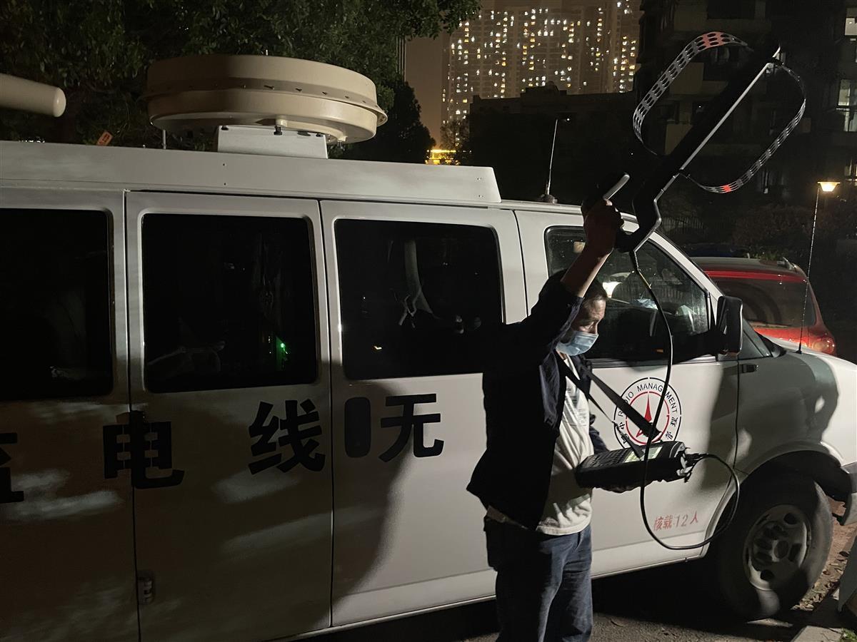 “黑广播”的信号来源指向江汉区,但由于城市里楼群林立,想要快速确定准确位置并不容易。监测车在该区域定向搜寻一个多小时后,范围被缩小到汉口火车站附近。当行驶至新华路附近时,信号明显增强。监测技术人员换上便携式监测设备,通过在周边高楼楼顶进行多点交叉测向定位,最终将该“黑广播”信号锁定某小区内。