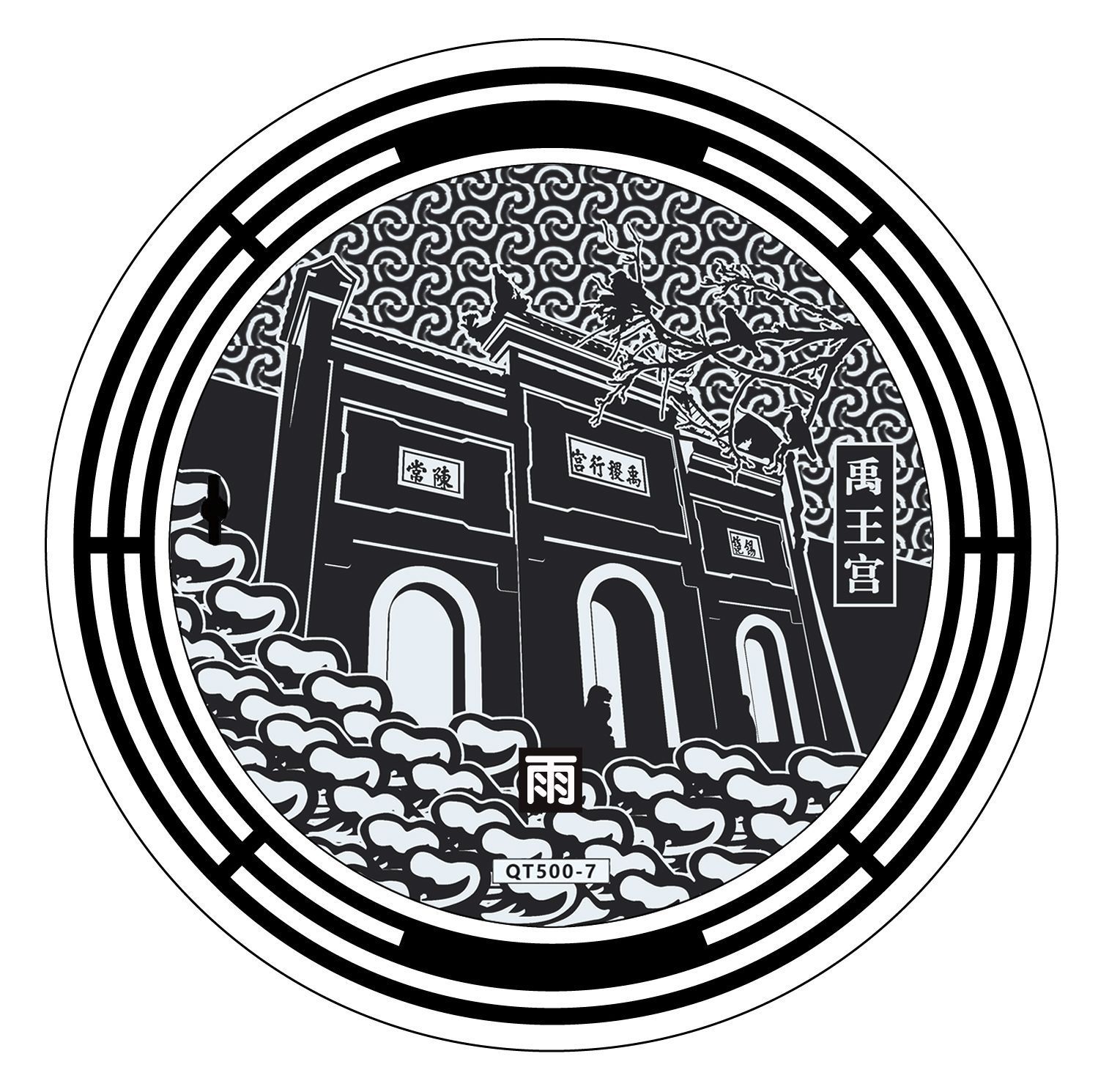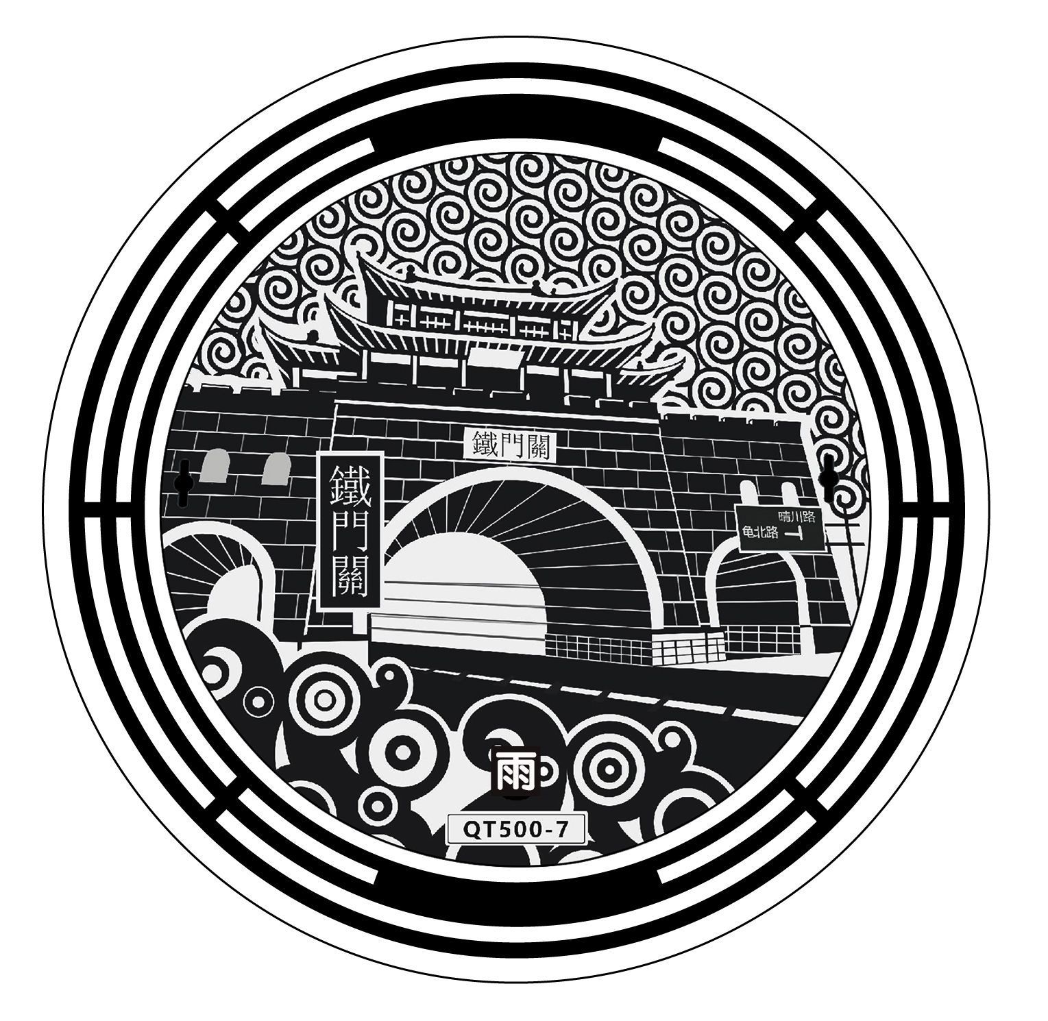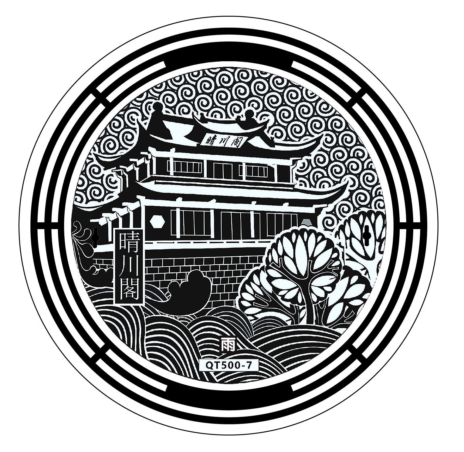 当天,记者在汉阳归元寺南路沿途发现数十个污水井盖和雨水井盖别具一格,其尺寸、材质与普通井盖并没有区别,最大的特色在于井盖表面的设计——污水井盖上雕刻着寺庙、宝塔、佛像、垂柳的图案,并附有“禅林杏染”字样;雨水井盖上则雕刻着汉阳树的图案,并附有“凤山秋兴”字样。