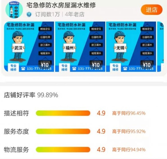长江日报大武汉客户端3月16日讯(见习记者李伊珏 记者张珺)3月8日,家住武汉的刘女士通过城市留言板联系到长江日报记者称:今年2月因家中漏水,她在淘宝上寻到一家名为“宅急修防水房屋漏水维修”店铺,简单咨询后,很快就有师傅联系她上门维修,操作完成对方收取了7000元的费用,但当晚刘女士家中又出现了“反水”的情况,进行了二次维修后问题才得以解决。