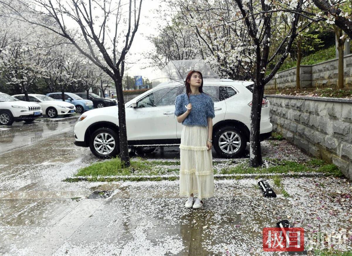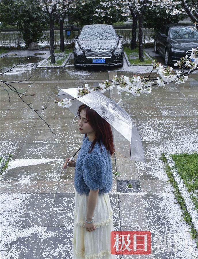 16日下午,风儿夹着大雨呼呼而来,打破了江城空气一天来的抑郁,从空中落下的,不仅有雨和冰雹,还有浪漫的樱花雨。